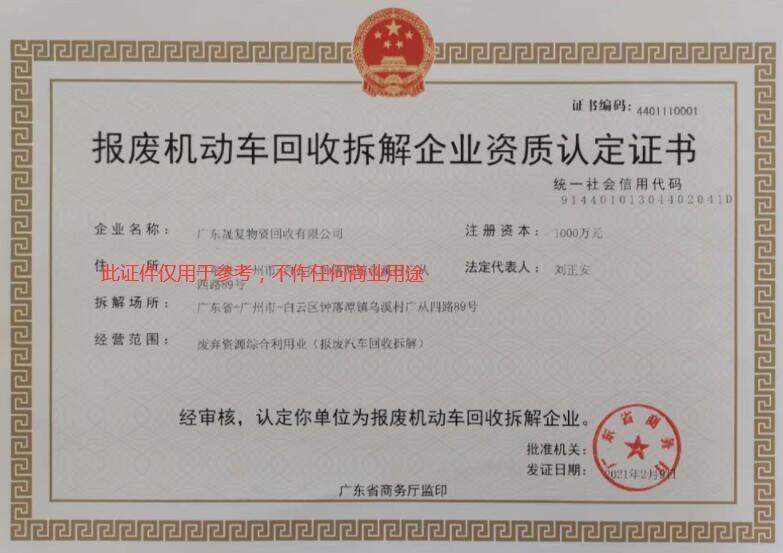 廣東晟復物資回收有限公司花都車輛報廢回收點是《報廢機動車回收管理辦法》(715號令)實施以來,省內首批驗收通過的機動車報廢回收拆解企業。從事報廢車回收與拆解,辦理機動車報廢注銷手續。汽車報廢、保留指標更新、報廢小車多少錢貨車報廢客車報廢多少錢報價咨詢、機動車報廢要什么資料、如何辦理報廢手續,上門拖車,一站式辦理報廢。服務市民,環保優先,提高資源利用,推動汽車拆解行業綠色可持續發展。